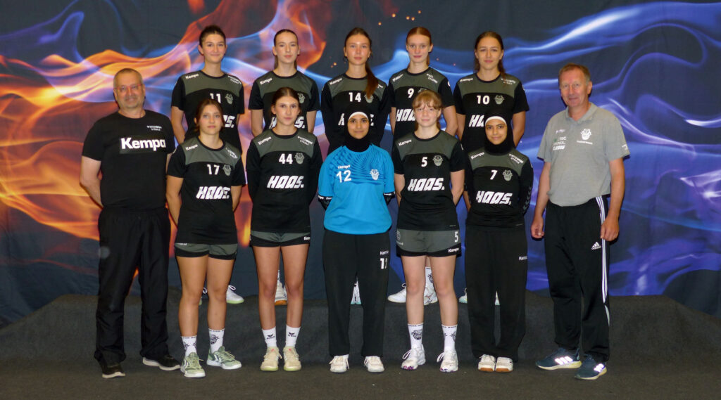 Vorne von links: Armin Messner (Co-Trainer), Juliane Bret, Emilia Lazarevic, Huda Keleli, Noelle Hess, Batoul Keleli, Bernd Messner (Trainer)