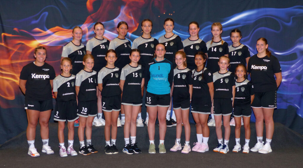 Vorne von links: Leonie Gerstmann (Co-Trainerin), Jule Rapp, Paula Dreher, Adelina Keller, Amina Derviskadic, Alina Lenz, Ida Schmidt, Oleksandra Lysenko, Ksenia Wasinger, Elisa Gola, Lena Möst (Trainerin)