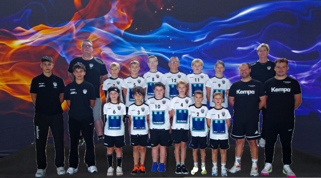 Vorne von links: Lukas Wölfl (Co-Trainer), Finn Thordsen (Co-Trainer), Marius Mossmann, Hadi Braunschweiger, Nils Hohner, Elias Klatt, Leonid Litau, Lion Mattes, Marian Ebe (Trainer), Erik Blank (Co-Trainer)