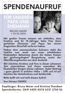 Mit dem tragischen Ereignis sind für die Familie neben dem unermesslichen persönlichen Verlust auch zusätzliche organisatorische und finanzielle Belastungen verbunden.